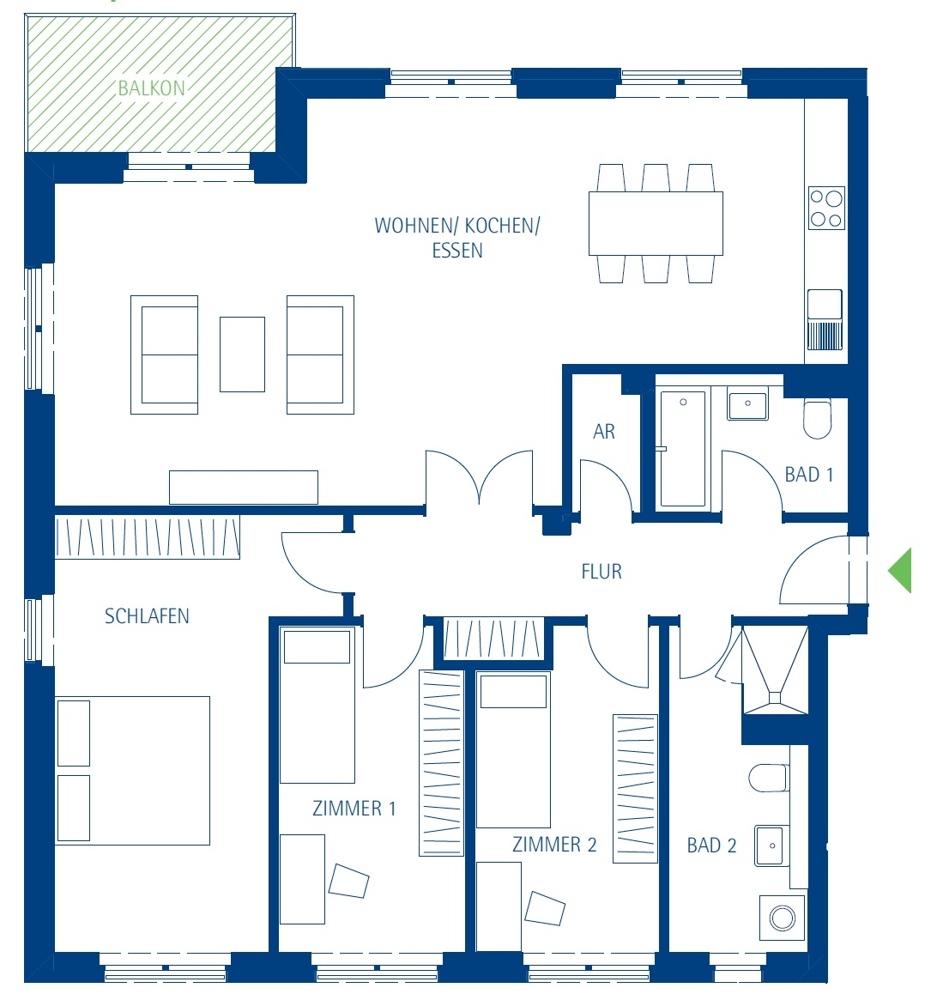 Lindenauer Hafen - Hafenstraße 13 (Haus 4, EG WE 1)Die helle 4-Zimmer-Wohnung befindet sich im Erdgeschoss des neu erbauten Wohnparks AQUA LindHa (Fertigstellung 2018) im Leipziger Westen. Genießen Sie hier die Qualität eines Erstbezugs mit allen Vorteilen des modernen Wohnens. Offene helle Wohnräume mit modernen Parkettböden und Fußbodenheizung. Weiterhin verfügt die Wohnung über zwei separate Badezimmer. Der offene Küchenbereich und der große Balkon machen diese schöne Wohnung auch komplett.Natürlich gehört auch ein separates Kellerabteil und ein Stellplatz in der Tiefgarage (75,00€ monatlich) mit zur Wohnung.Die gezeigten Bilder sind Referenzbilder aus einer identischen Wohnung im 3.Obergeschoss.Ausstattung