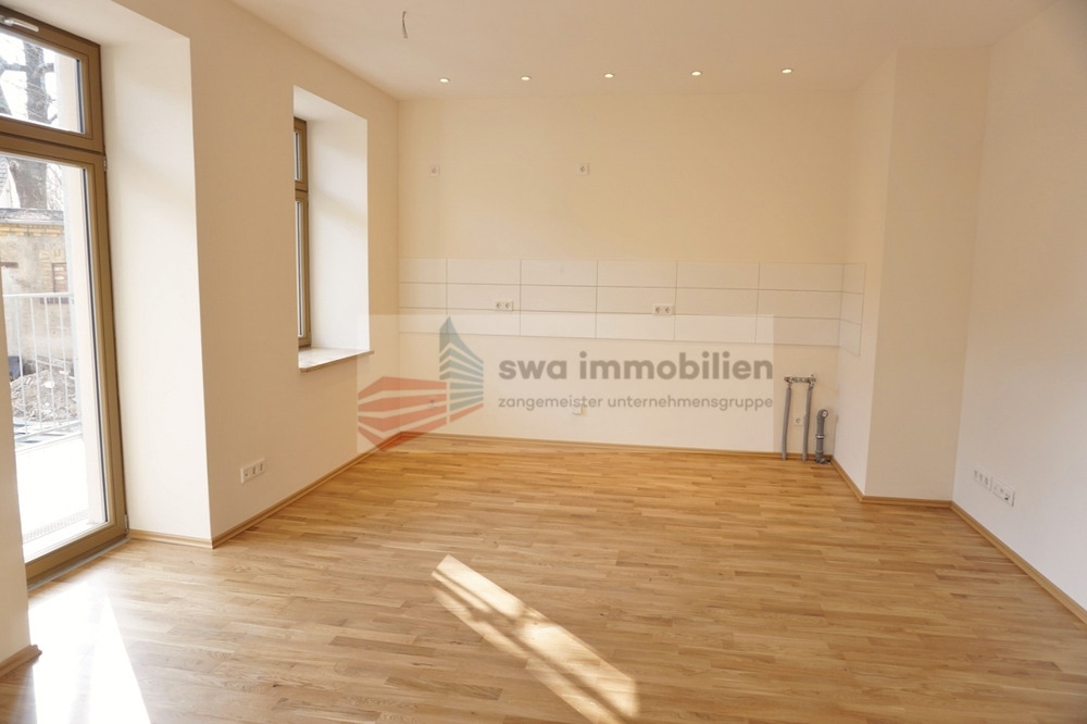 ++ Zweitbezug ab 01.01.2020++Der stilvolle Altbau in der Wurzner Straße 148 wurde im Jahr 2017/2018 voll umfänglich und mit viel Liebe zum Detail für Sie saniert.Die 3-Zimmerwohnung mit Balkon befindet sich Erdgeschoss des Hauses. Auf knapp 26 qm lassen sich herrlich die offene Küche und das Wohnzimmer verbinden - traumhaft offener Schnitt und freundlich hell durch die zahlreichen Fenster zum Hof. An das Wohnzimmer schließt sich der geräumige Süd-Balkon mit knapp 8 qm an. Durch die herrliche Südausrichtung genießen Sie die Sonne auf Ihrem Balkon. Neben dem gemütlichen Wohnzimmer erwarten Sie zwei weitere Wohnräume mit 14 qm und 11,3 qm Wohnfläche. Ebenso erwartet Sie ein modernes und hochwertig ausgestattetes Badezimmer. Neben der Badewanne bietet das Bad einen Spiegel, einen Handtuchheizkörper sowie LED Spots und ein Einbauradio. Die Waschmaschine können Sie im praktischen Hauswirtschaftsraum unterbringen. Ein Gäste-WC und die vollflächige Fußbodenheizung runden die Ausstattung ab.Ein Bezug der Wohnung ist ab dem 01.01.2020 möglich. Eine Besichtigung der Wohnung können wir, in Absprache mit den jetzigen Mietern, bereits jetzt anbieten.Ausstattung
