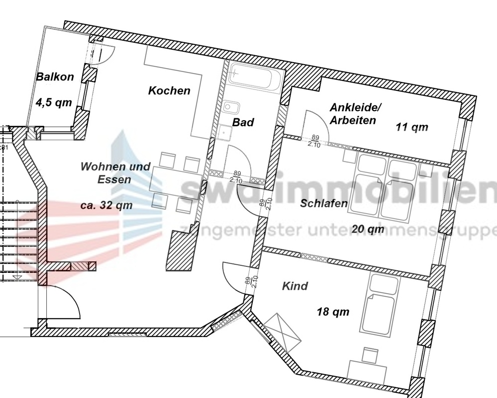 * drei weitere Wohnräume mit 18 qm, 20 qm und 11 qm