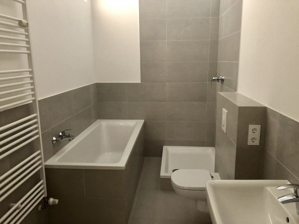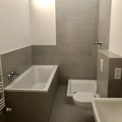 * Badezimmer mit hochwertigen Fliesen ausgestattet